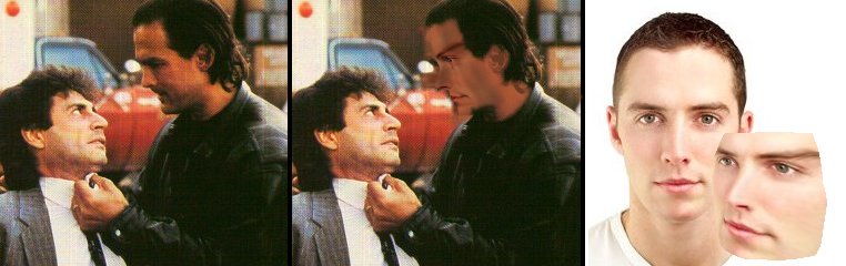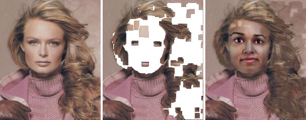 and sharp chin, whereas the replacement woman has a soft and rounded